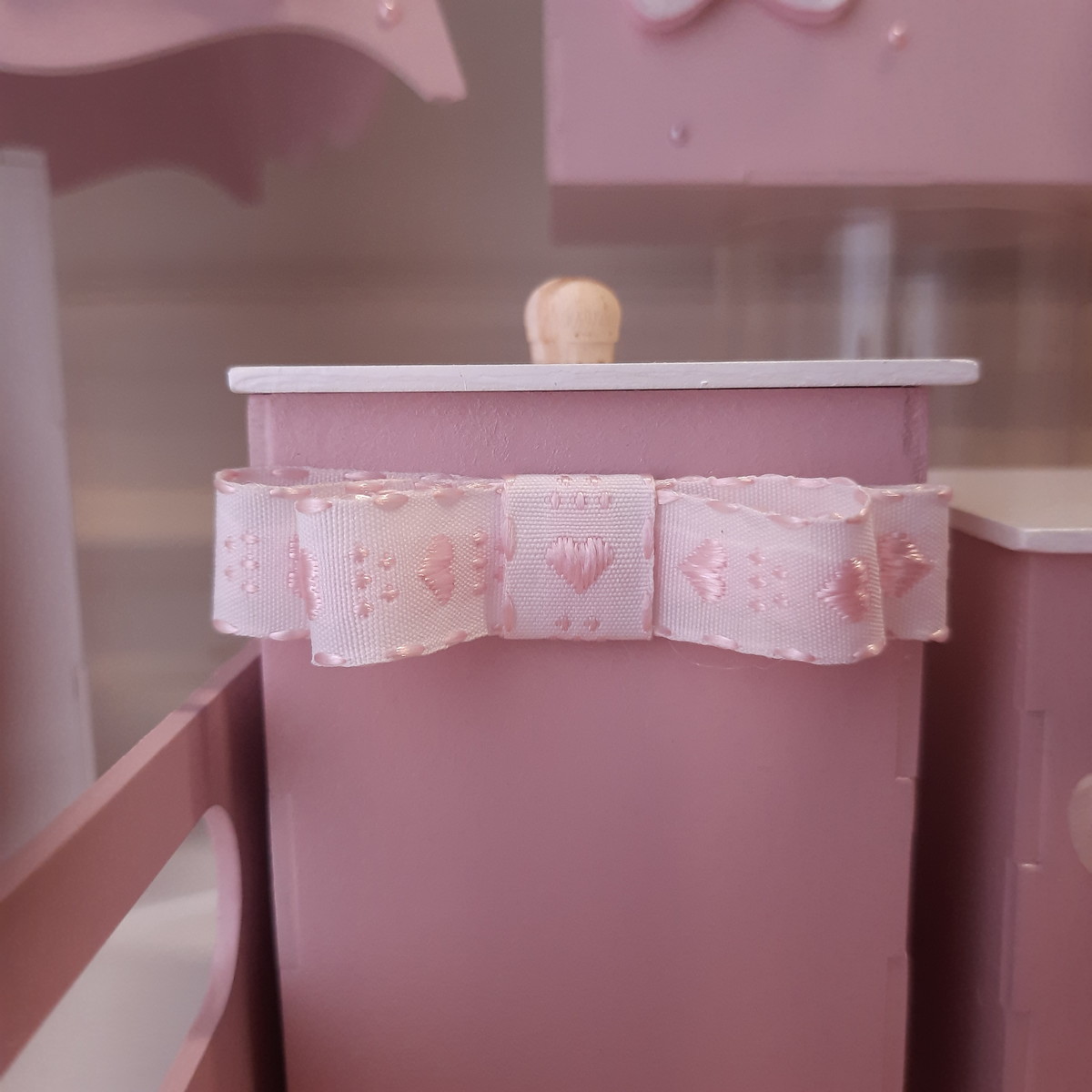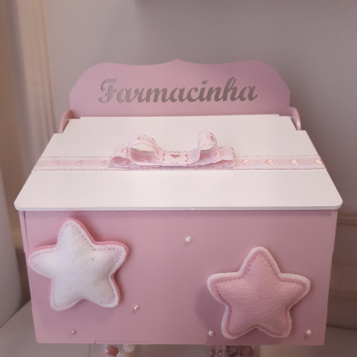Kit higiene 6 peças: bandeja, 3 potinhos, porta fraldas e farmacinha.