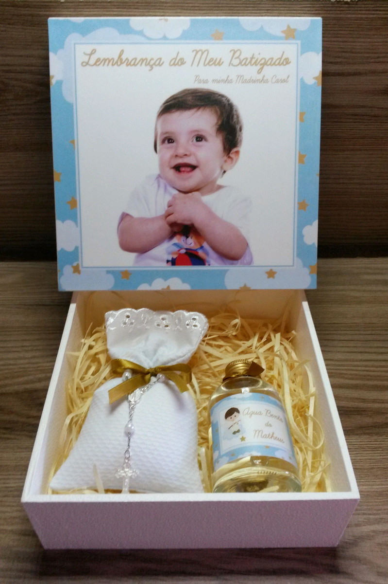 1 Caixa em MDF 15cm x 15cm possui pintura branca levemente texturizada com decoupagem de foto na tampa + mensagem com oração do Santo Anjo na parte interna da tampa .