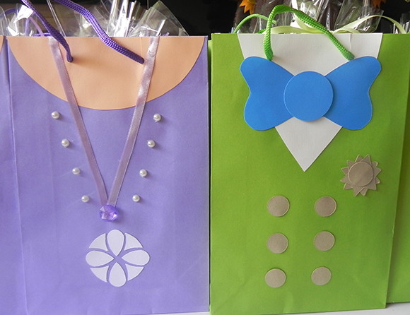 O valor do kit se refere a coroa + colar da Princesa Sofia, embalados em saquinho celofane, dentro de uma charmosa sacola Kraft, com o vestido da princesa.