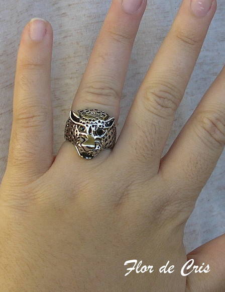 Anel leopard, banhado a prata.