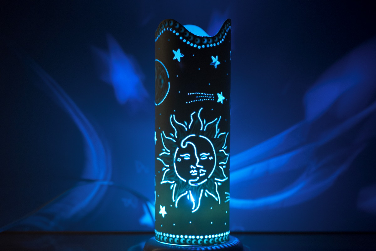 * para obter o efeito de sombras do desenho da luminária na parede , sugerimos que use uma lâmpada incandescente de bolinha 15 w .