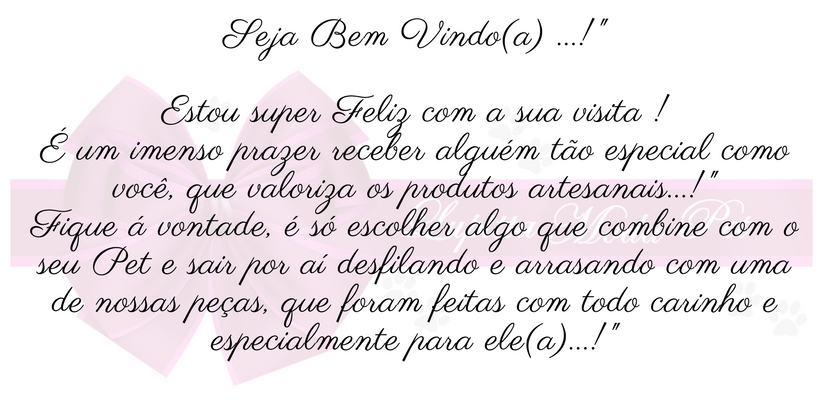O trabalho da Lupitta Moda Pet é todo confeccionado artesanalmente a mão. Caso não tenhamos a peça escolhida a pronta entrega, sera necessário um prazo de 5 dias para confecção e postagem. Por esse mesmo motivo, podem ocorrer ocasionalmente pequenas alterações na confecção devido a materiais, sem comprometer a qualidade da peça. Nosso site conta com toda a segurança do MOIP, para sua compra ser segura. A entrega será feita por intermédio do SEDEX ou PAC. Assim sendo, ao preço da peça escolhida será acrescido o valor correspondente ao frete para sua localidade. Por isso, é muito importante fornecer corretamente o endereço completo, principalmente o CEP para o cálculo do preço do serviço, e também para que seu recebimento seja garantido. Temos um compromisso de respeito com os nossos clientes, por isso garantimos a troca de qualquer produto que apresente defeitos, obedecendo as regras do Código e Direito do Consumidor. ATENÇÃO! OS PEDIDOS QUE FICAREM MAIS DE 03 DIAS SEM RESPOSTA OU SEM ATUALIZAÇÃO SERÃO CANCELADOS. DÚVIDAS ou RECLAMAÇÕES - Caso tenha tido algum problema, por favor nos avise e vamos conversar :) - Estamos à sua disposição para ajudá-lo(a). Qualquer dúvida que você tenha entre em contato através do ícone "CONTATAR VENDEDOR". Pronto, agora Você é VIP na Lupitta Moda Pet é só sair por aí desfilando com seu pet, com uma de nossas peças que foram feitas com muito amor e carinho..! Volte sempre ...!" :)