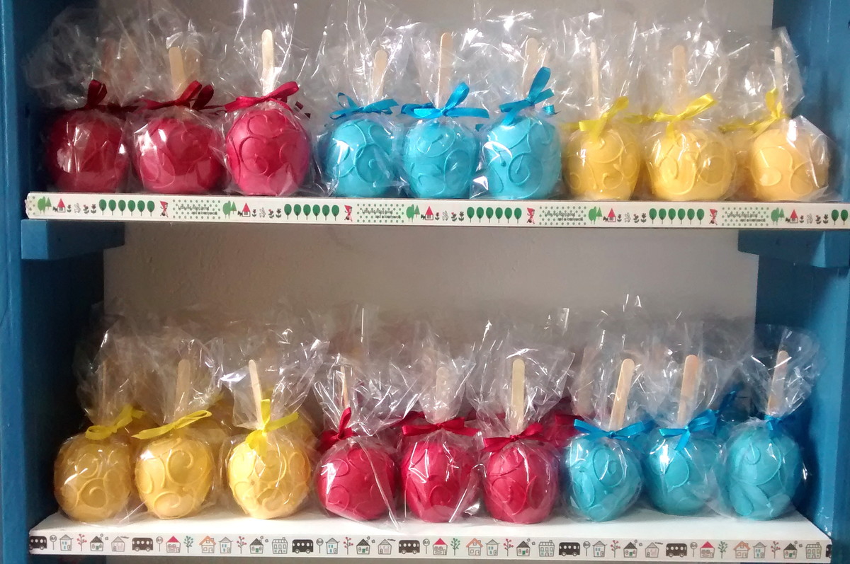 Personalizamos as maças do amor de acordo com o tema da sua festa. São lindas para decorar a mesa e muito gostosas; banhadas no chocolate ao leite ou coloridos e decoradas com arabescos.