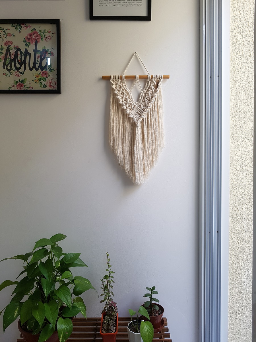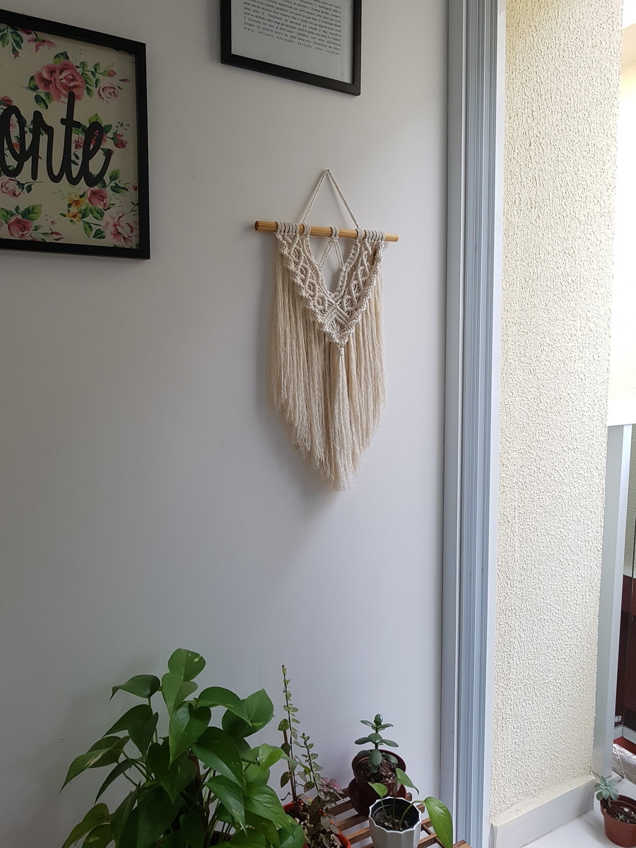 Barbante fio 12, na cor cru. Desfiado com barbante 24.