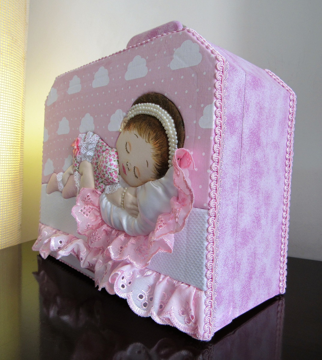 Linda maleta revestida em algodão 100%, utilizando a técnica do patchwork embutido na tampa. Com bolso interno organizador. Ideal para levar a primeira troca do bebê para a maternidade, podendo colocar as lembrancinhas para serem entregues, depois em casa a mamãe poderá colocar o kit higiene etc. (Tamannho 32x26x14).