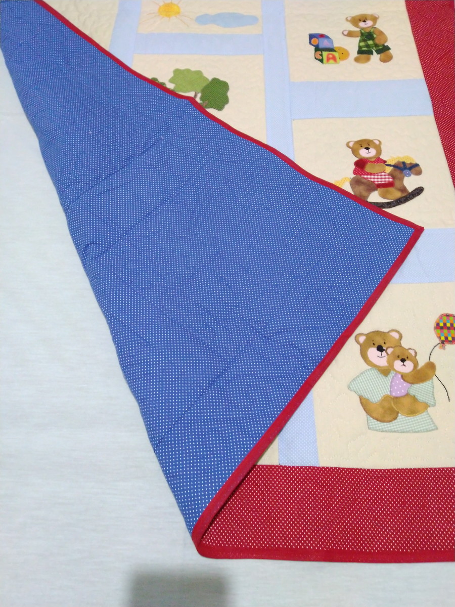 Manta de bebê em patchwork. Tecido e forro de algodão, pré lavado. Com manta acrílica, quiltada.