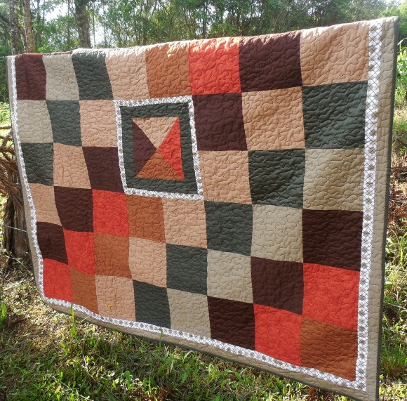 Manta em patchwork,estruturada com manta acrilica e quiltada.Cores da terra