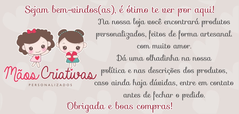 Olá, sejam bem-vindos(as) a Mãos Criativas Personalizados, é ótimo ter você aqui!