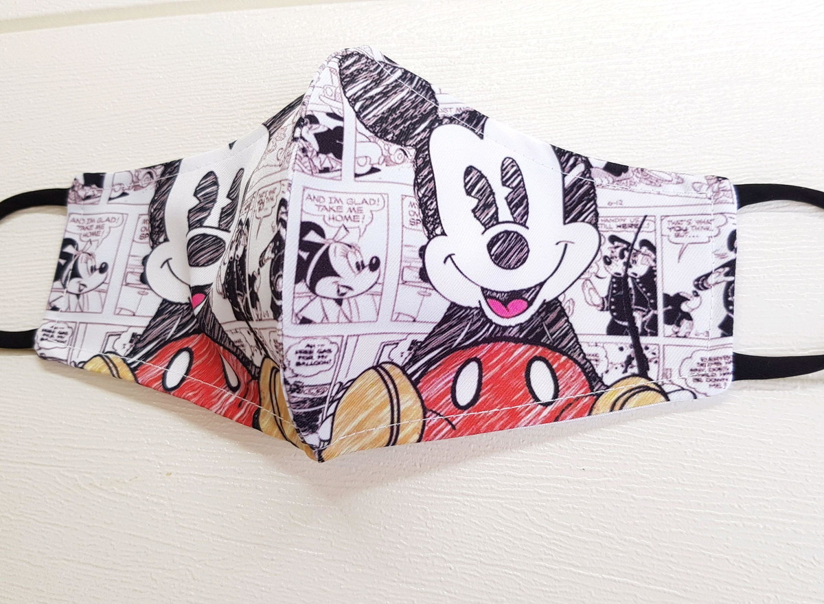 Máscara Mickey em tecido Gabardine Microfibra estampado e forro 100% algodão