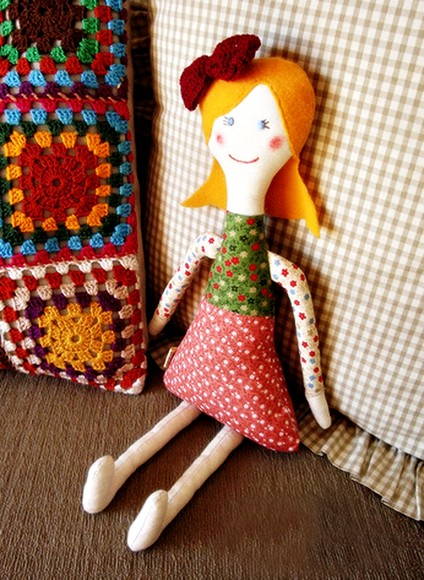 Mais uma charmosa boneca de pano, com laço feito em crochet.
