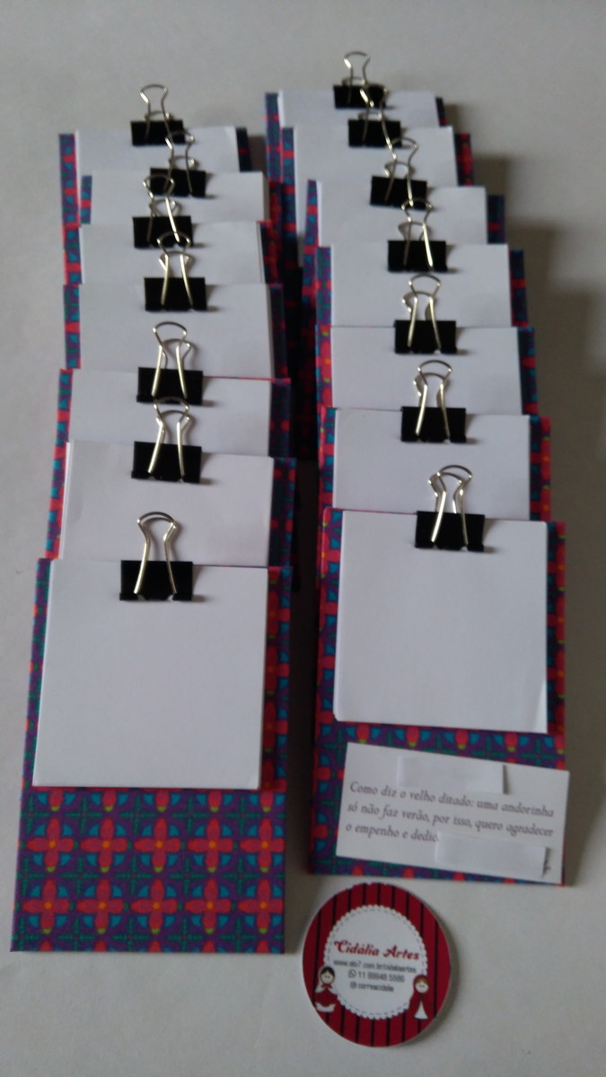 Mini pranchetas revestidas em tecido 100% algodão ou papéis especiais.. Acompanham 30 folhas papel sulfite