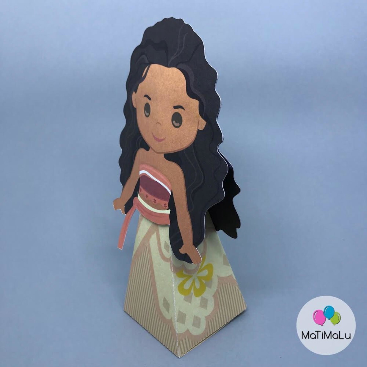 A caixa em formato de pirâmide que reproduz a saia das princesas pode ser usada para guardar bombons, doces e etc.