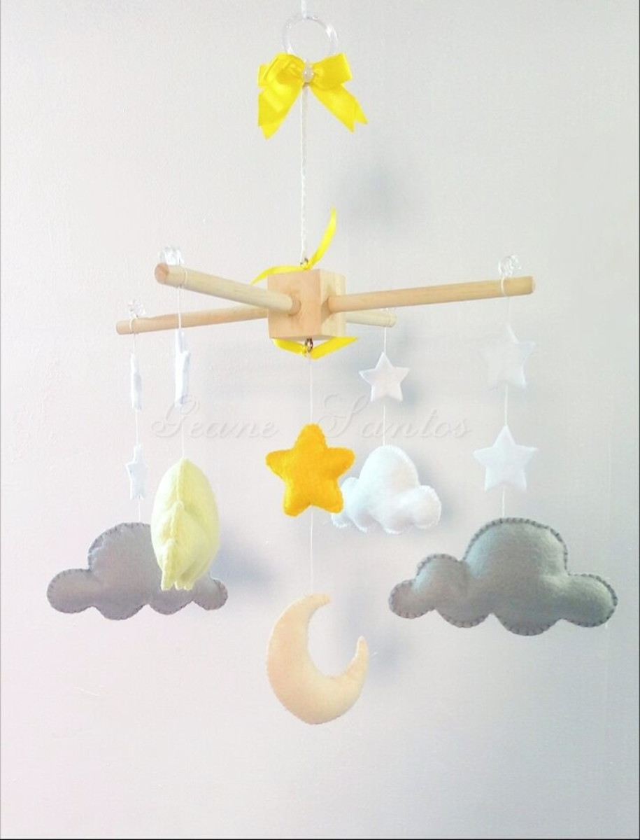Móbile Lua Nuvens e Estrela com 6 elementos. Confeccionado de forma completamente artesanal.