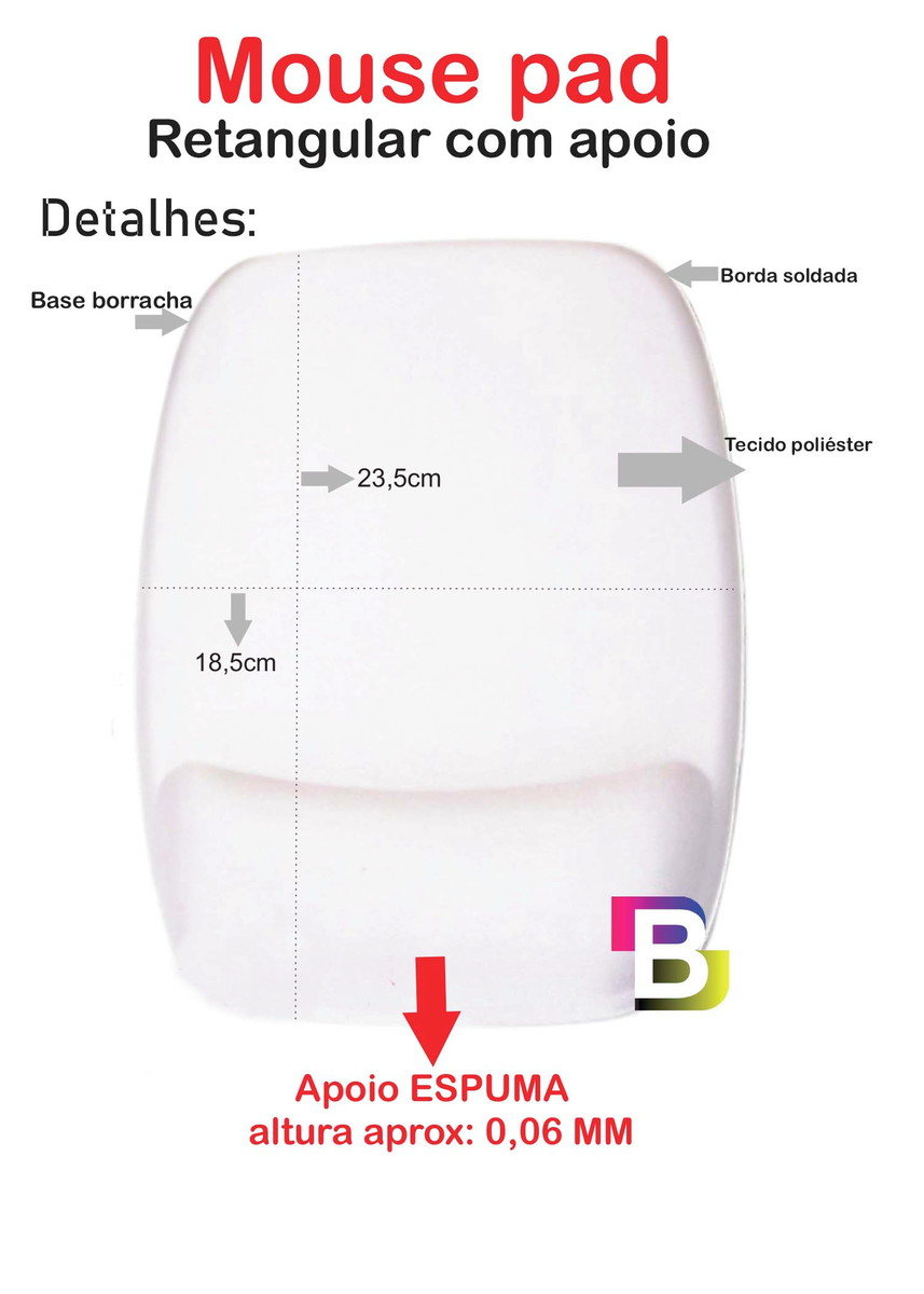 Material: Base borracha, apoio de pulso em espuma, Revestimento poliéster resistente.