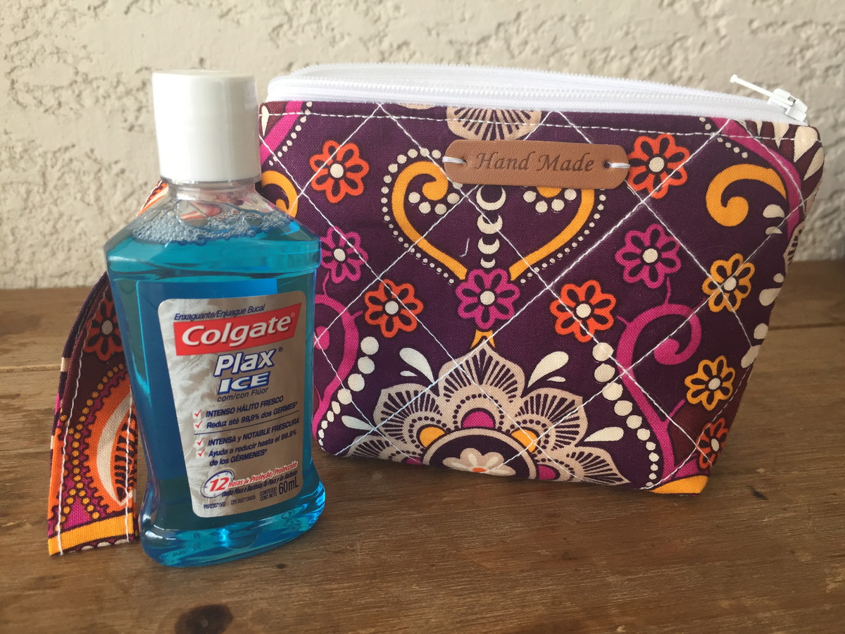 Necessaire confeccionada em tecido de algodão tricoline importado.