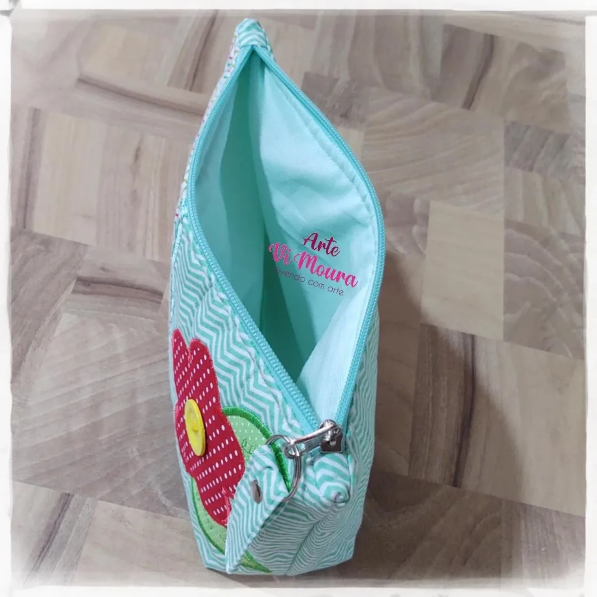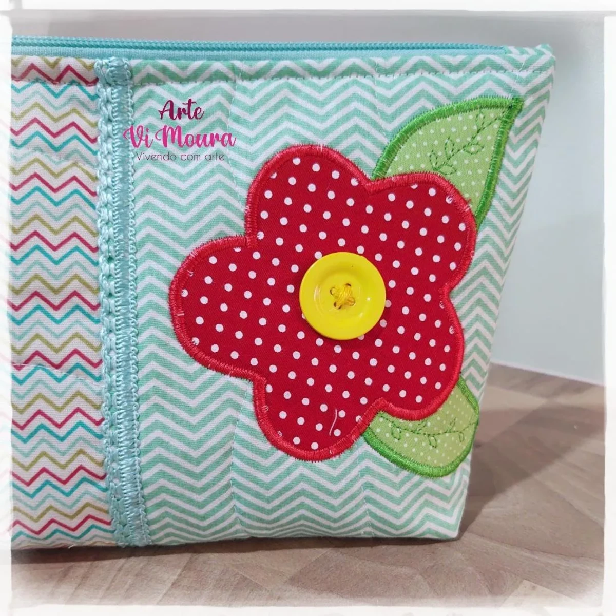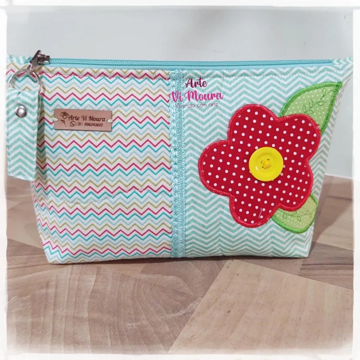 Necessarie patchwork espaçosa, confeccionada em tecido 100% algodão, estruturada em manta R1 , forrada, detalhes externo em matelassê e patchapliquê. Enfeites variados: tira bordada, sianinha, passa-fita,etc...