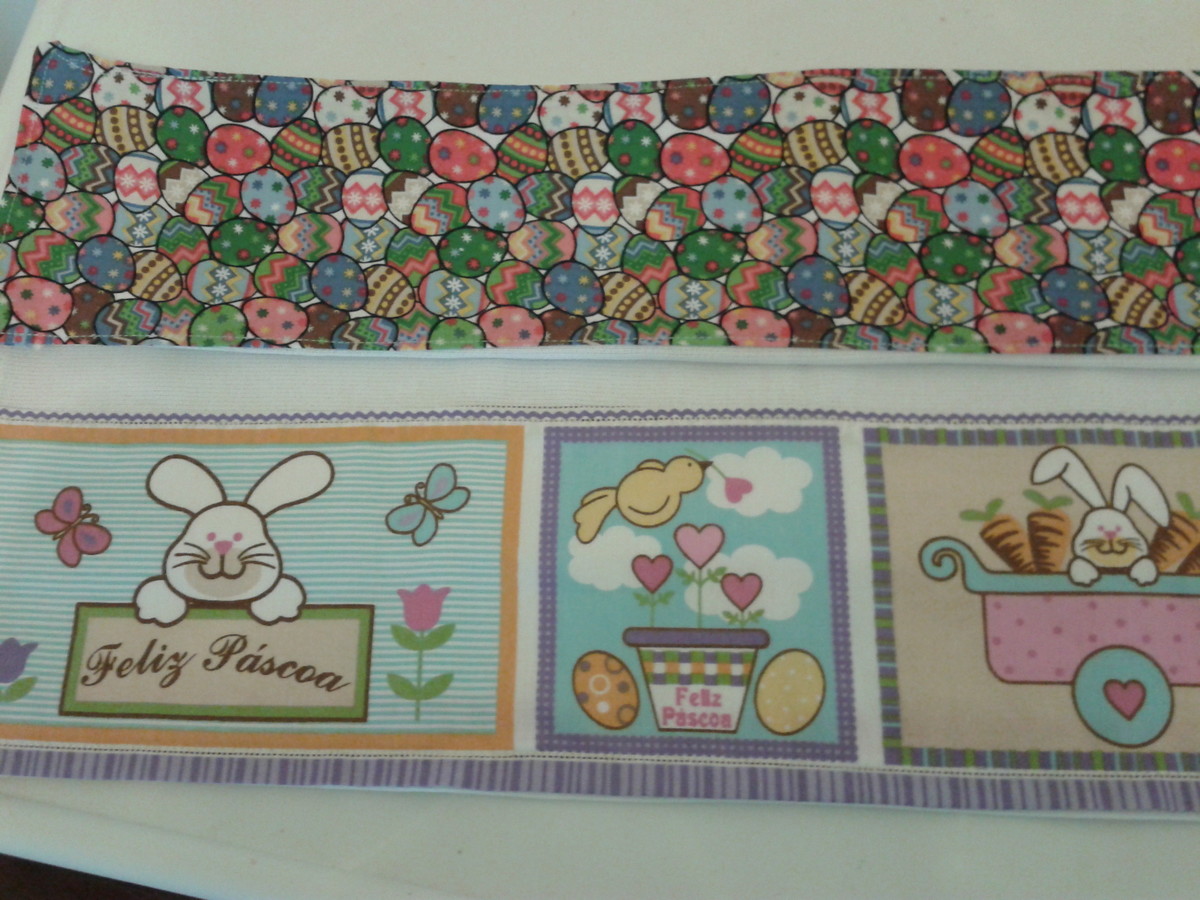 Pano de copa feito com tecido 100% algodão, com barras em cima e embaixo.