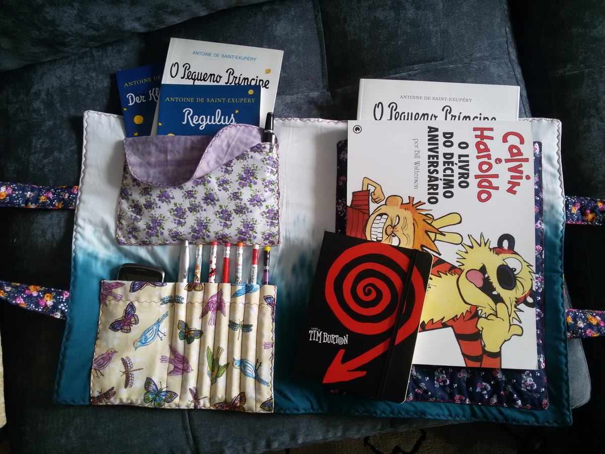 Pasta com bolsos, porta caneta/lápis, celular, compartimentos para guardar livros,cadernos, ipad, notebook e o que mais desejar.