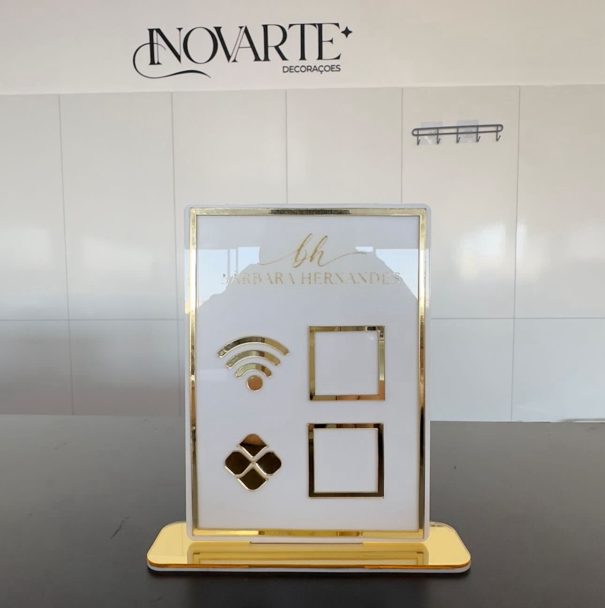 Placa em acrílico elegante e resistente, feita sob medida para o seu negócio.