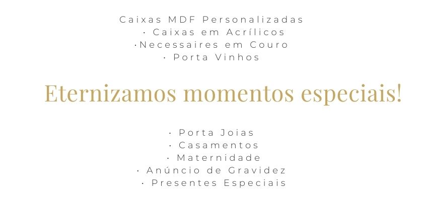 Os produtos podem ser personalizados com nomes, datas ou frases. Após a compra, entraremos em contato para confirmar os detalhes da personalização.