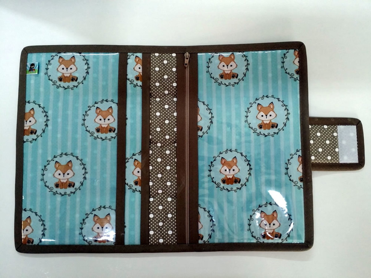 Porta documentos em tecido 100% algodão, estruturado com manta acrílica e quilting, fecho com velcro e lindo botão de madeira para decorar (modelo do botão conforme disponibilidade).