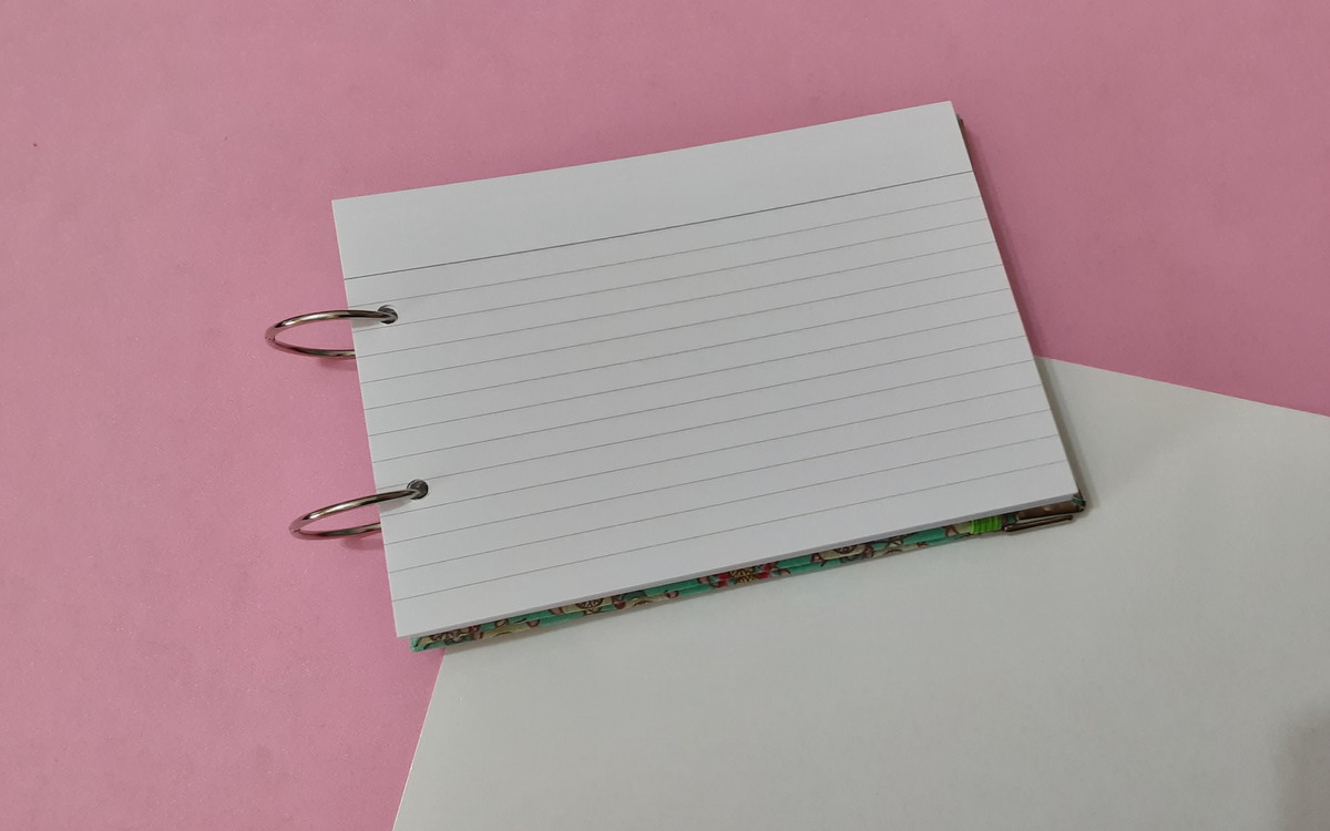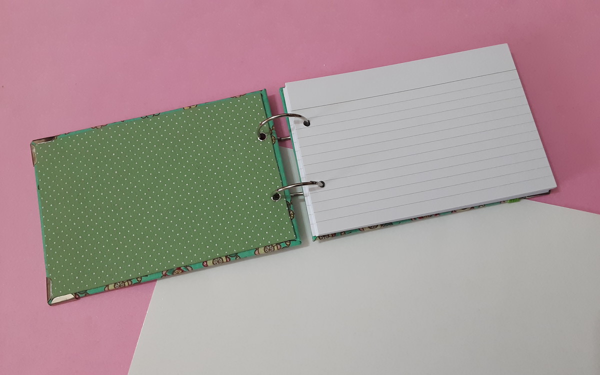 O porta-fichas serve para guardar suas fichas de resumo e é muito pratico por possuir argolas que abrem para substituição da mesma.