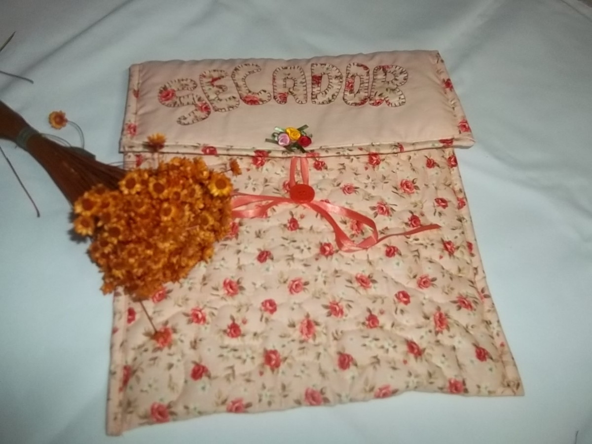 bolsa para guardar seu secador quiltada, bordada patchcolagem, em tecido 100% algodão, as cores podem variar. porta secador 35,00,