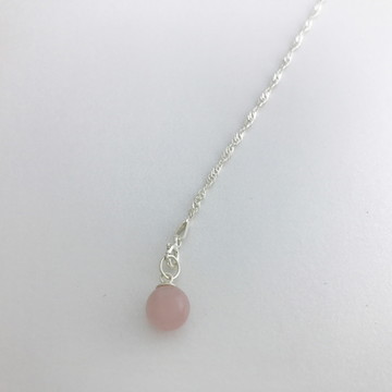 Pulseira de prata malha singapura 19cm com pingente esfera de quartzo rosa 10mm
