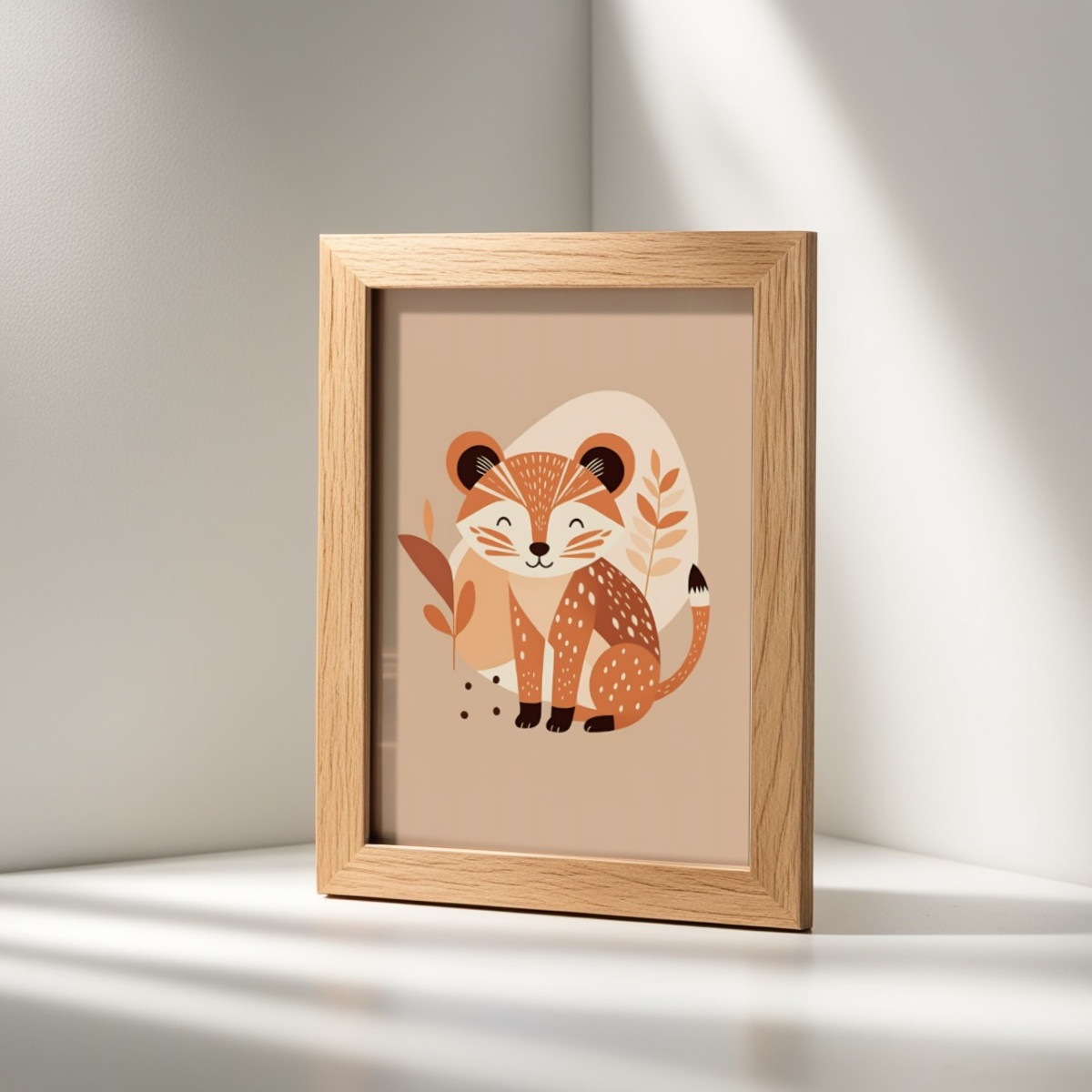 Quadro Infantil com Vidro - Moderno Animais Boho A4
