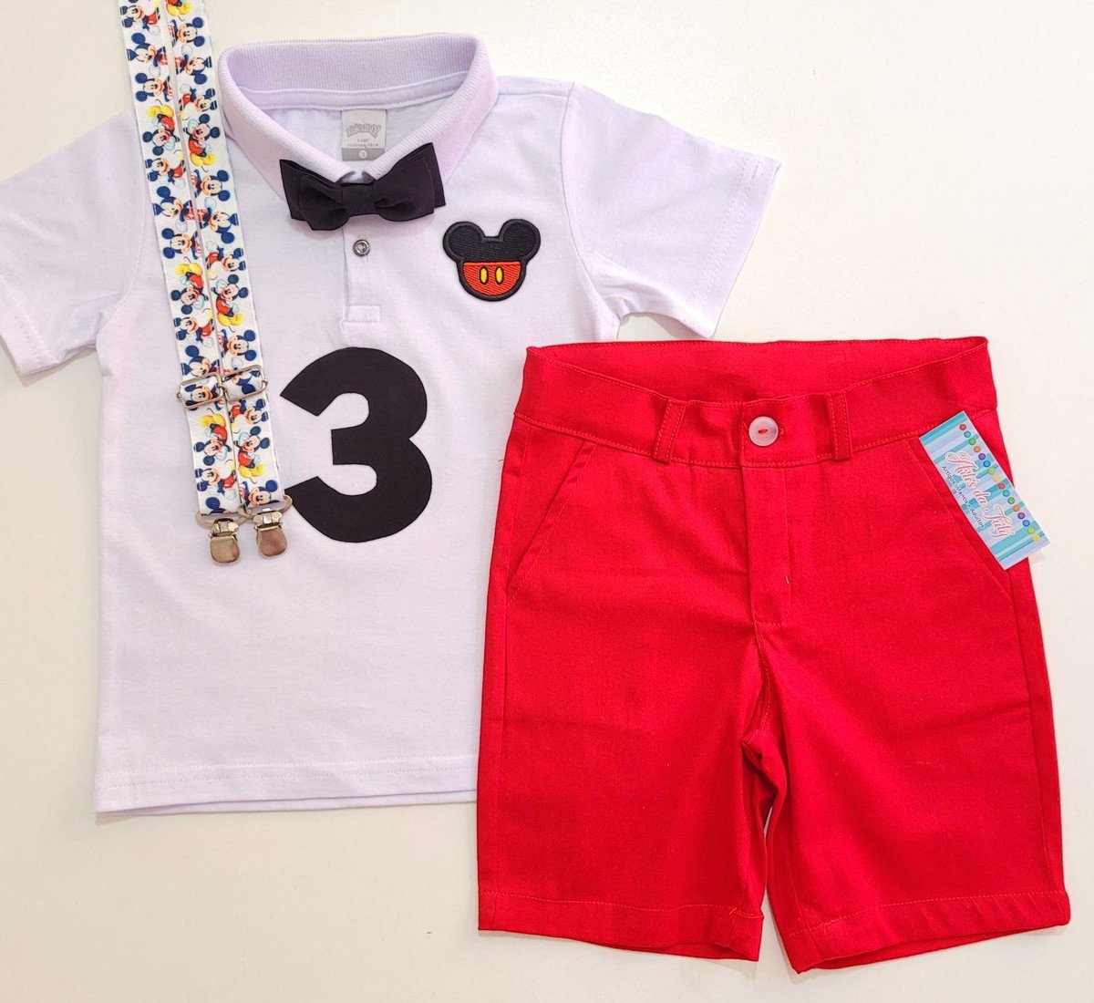 Suspensório personalizado mickey e gravata