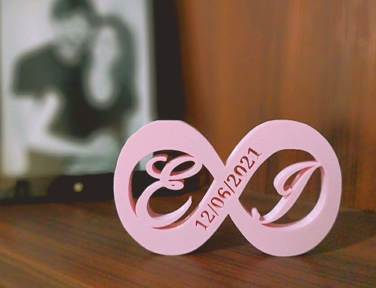 Símbolo infinito, amor infinito, com iniciais de nomes e data, escolha a cor que melhor ornar com seu ambiente, fabricado em impressão 3D, material plástico do tipo ABS! Ideal para decorações de quarto, salas, decoração para momentos especiais, eternizar uma data, etc.