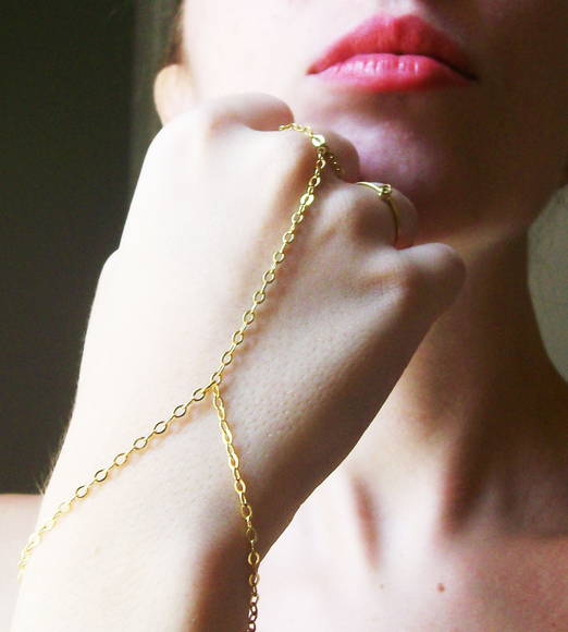 Slave bracelet é uma pulseira-anel regulável com fecho. Corrente em prateado ou dourado.