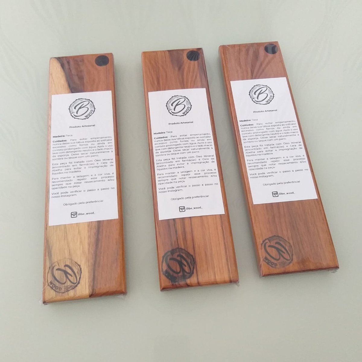 Possui acabamento fino e tratamento com óleo mineral e cera de abelha, ideal para contato com alimentos.