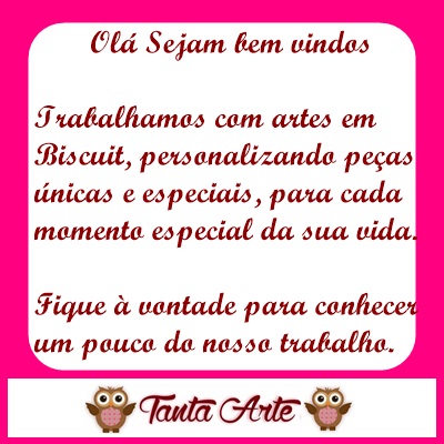 Olá, bem vindos a Tanta Arte. Meu nome é Tamares, é um prazer recebê-los. Trabalhamos com decorações para festas infantis, com arte em biscuit (porcelana ...ver mais