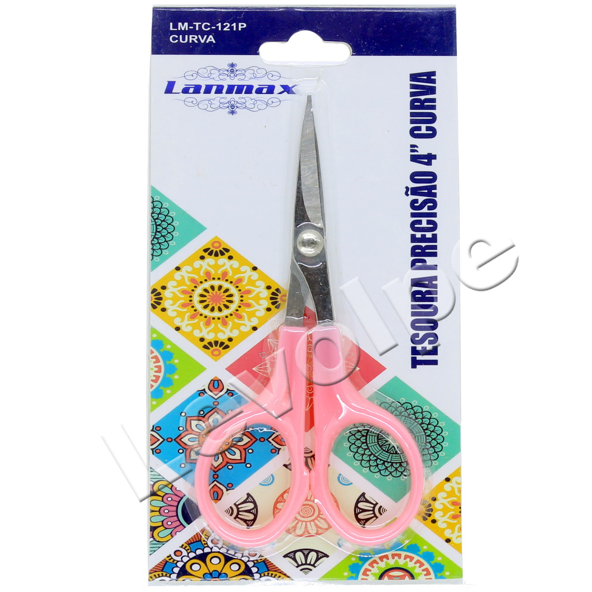 Tesoura De Precisão Arremate Ponta Curva Rosa 4 Polegadas