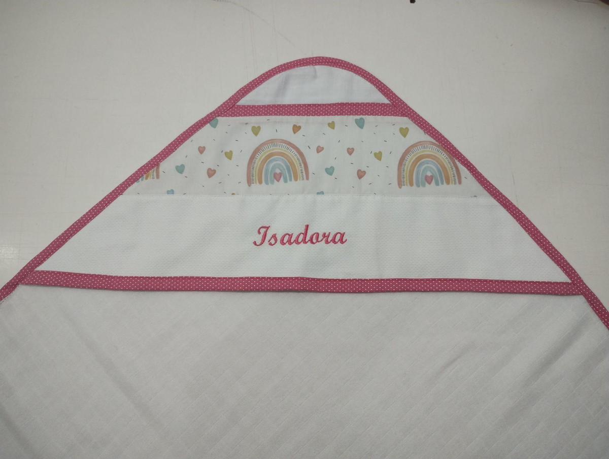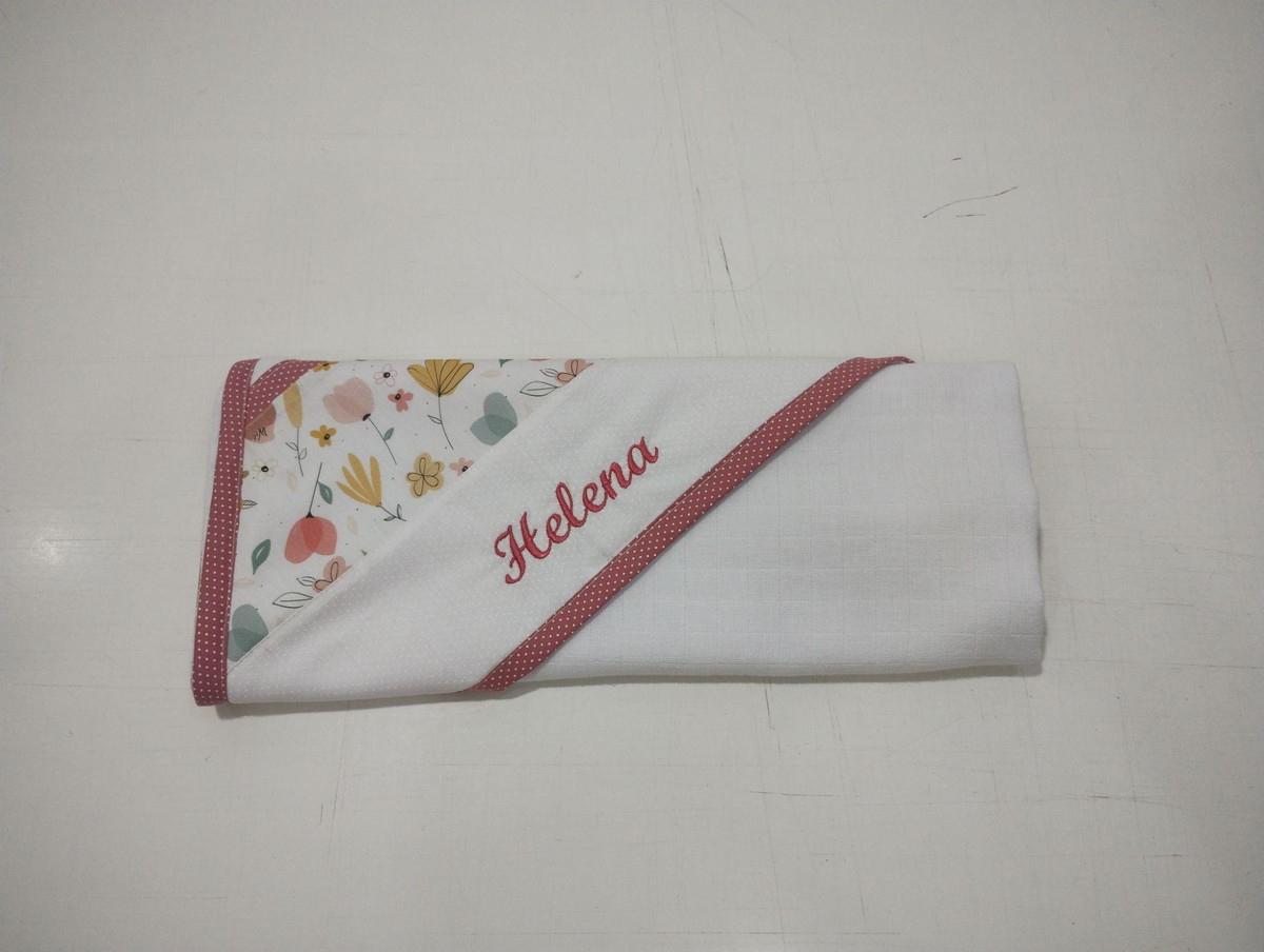 Toalha fralda para bebê feita com tecido de fralda com capuz com opção de bordar o nome.
