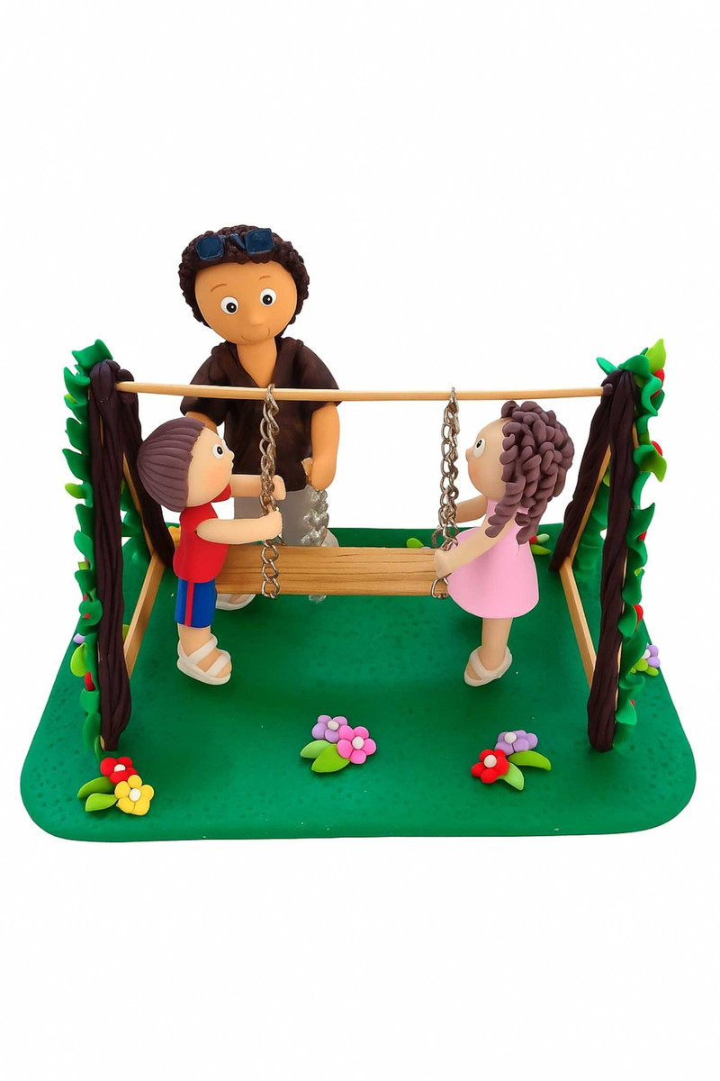Balancinho feito com palitos de sorvete e decorado em biscuit