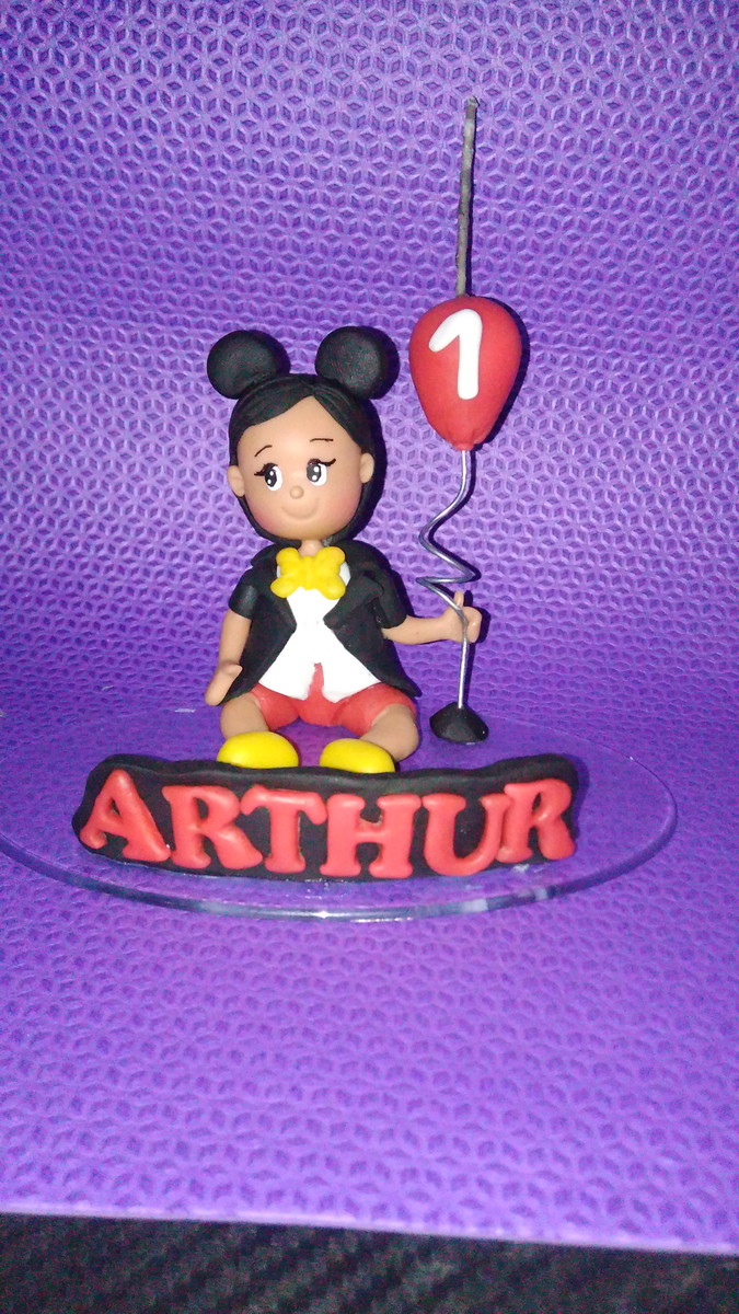 Vela artesanal feita em biscuit tema Mickey baby...