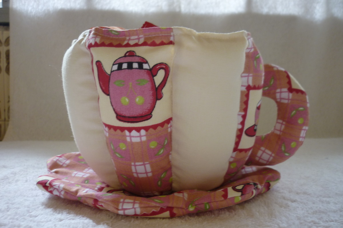Xícara de patchwork para decoração. Pode ser usada para colocar sachês de chá, pequenos vasos de flores ou como você desejar.